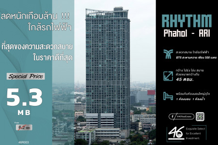 ขาย คอนโด Rhythm พหล-อารีย์ 45.05 ตรม. ชั้นสูง วิวดี ราคาคุ้มที่สุด