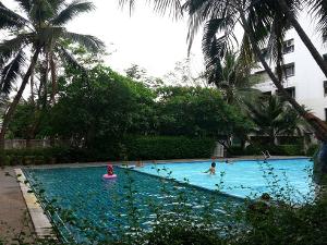 พื้นที่รอบอาคารแบ่งเป็นพื้นที่สวน และสระว่ายน้ำขนาดกลาง มีทั้งสระเด็กและผู้ใหญ่