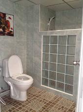ห้องน้ำปูกระเบื้องใหม่ทั้งห้อง ประตูเหล็กดัด