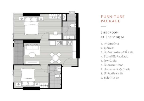 ขนาดพื้นที่ 57.0 ตารางเมตร