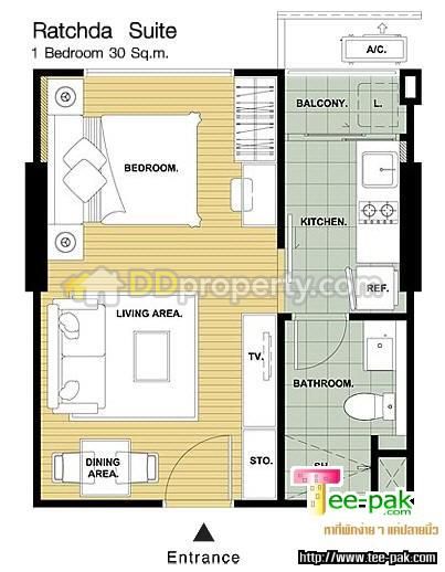 ขาย IVY รัชดาฯ ชั้น 2 ขนาด 31 ตรม. แบบ Studio 1ห้องน้ำ มีกั้นโซนห้องครัว