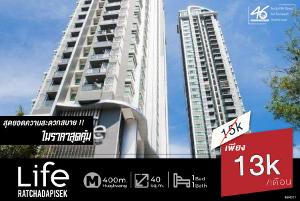 ให้เช่า คอนโด Life Ratchadaphisek ห้องพร้อมอยู่ ใกล้ MRT ห้วยขวาง 500 เมตร