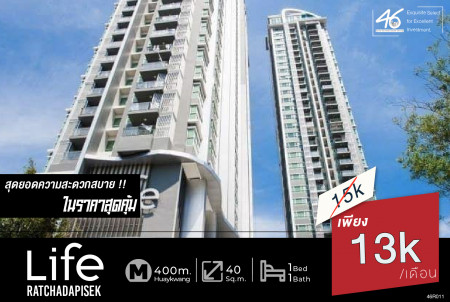 ให้เช่า คอนโด ใกล้ MRT ห้วยขวาง Life รัชดาภิเษก 32 ตรม. On the main road