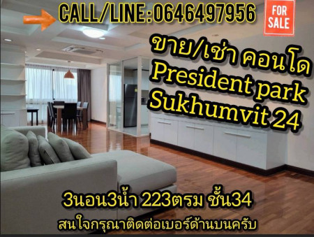 ให้เช่า คอนโด ชั้นสูง 3นอน 223ตรม เพรสซิเดนท์ ปาร์ค คอนโดมิเนี่ยม 223 ตรม.