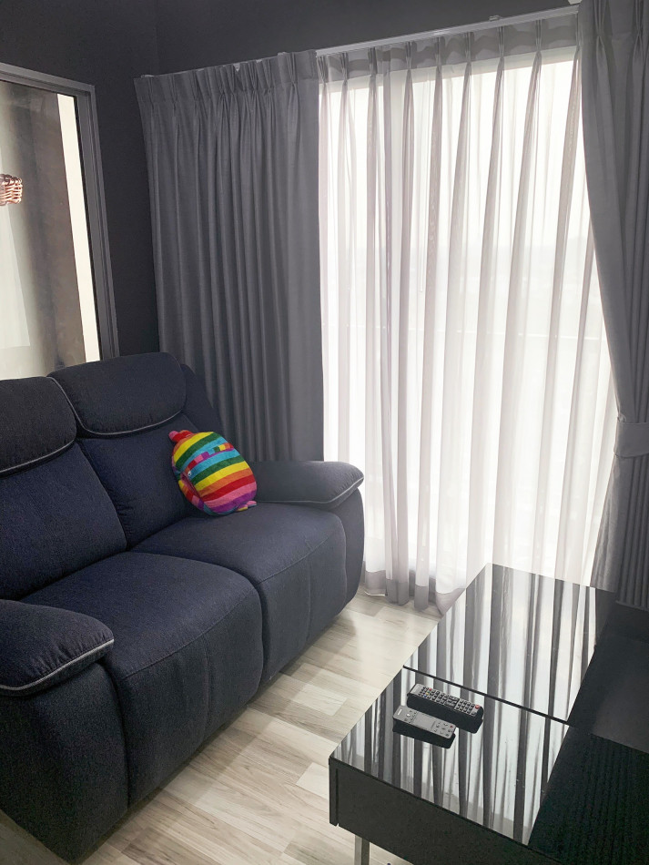 Build-In และติดฟิล์มทั้งห้อง, เตียง 5ฟุตที่นอน(ใหม่), โต๊ะเครื่องแป้ง(พับได้),เครื่องปรับอากาศ, ตู้เสื้อผ้า, ม่านสองชั้น, มู่ลี่, เครื่องทำน้ำอุ่น, ชุดครัว, โซฟา 2ที่นั่งปรับเอนไฟฟ้า, ตู้ใส่รองเท้าและตู้เก็บของ 3ตู้, ชั้นวางทีวี, ตู้เย็นสองบาน, ไมโครเวฟ, Smart TV, Digital Door Lock, เครื่องซักผ้า, โต๊ะพับและเก้าอี้