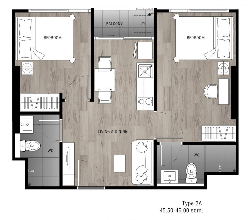 ขนาดพื้นที่ 46.0 ตารางเมตร