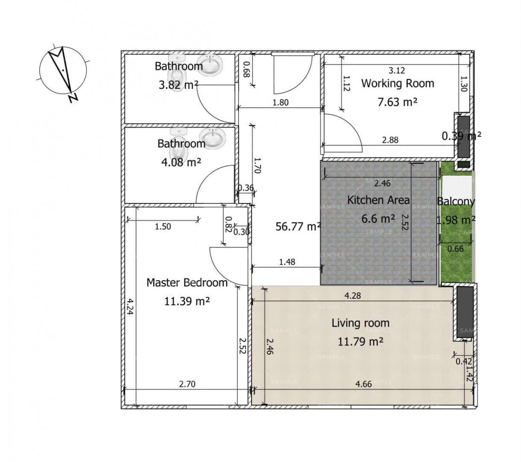 - ชนิด 2 ห้องนอน 2 ห้องน้ำ