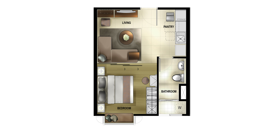 - Sliding door ระหว่างห้องนั่งเล่น และ ห้องนอน