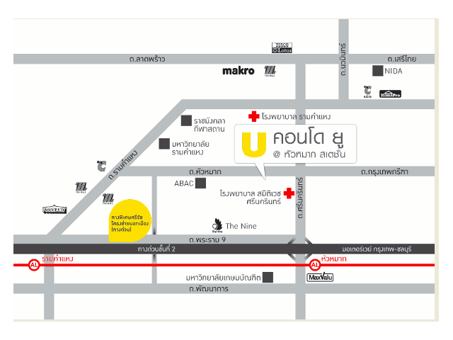 ขาย U condo หัวหมาก ตึก A ตึกที่ติดถนน ชั้น 2 โอนแล้วสามารถเข้าอยู่ได้เลย คอนโดสร้างเสร็จแล้ว