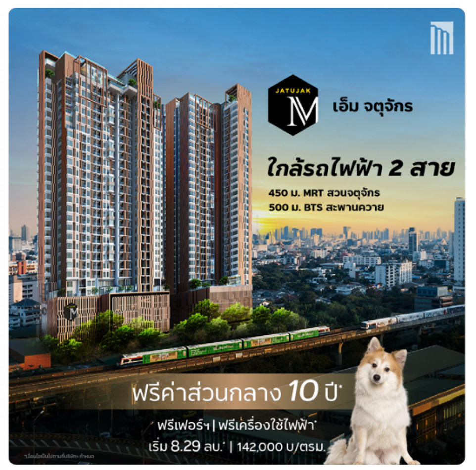 เอ็ม จตุจักร คอนโดเลี้ยงสัตว์ได้ พิเศษ เพิ่มจากโปรราคาพิเศษ และ ส่วนกลางเพิ่มอีก 5 ปี