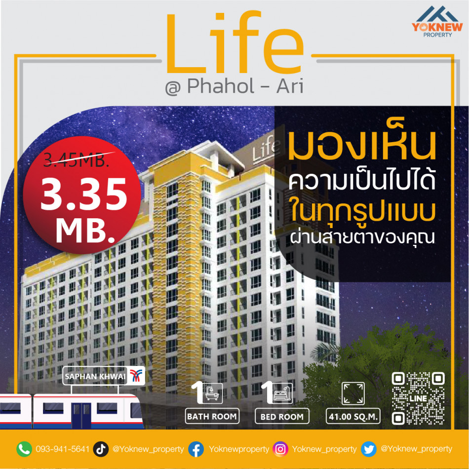 ขายราคาดีห้องพร้อมอยู่ Life @ Phahon – Ari ใกล้ BTS ทั้ง สะพานควายและอารีย์
