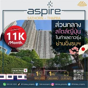 ให้เช่า ASPIRE สาทร-ท่าพระ ชั้น18 1bed 31ตรม ใหม่ สวย ถูก แค่11000 ติดBTSตลาดพลู