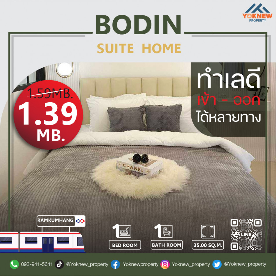 ขาย Bodin Suite Home ห้องตกแต่งได้สวยงาม ทำเลดีเข้าออกได้หลายทาง