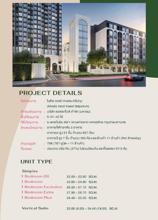 ขายคอนโดโครงการ Modiz Vault Kaset Sripatum - 68700 บาท ติดต่อคุณ ป๊อบ