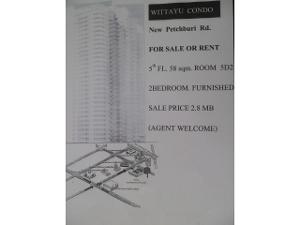FOR SALE OR RENT 5th FL.58 sqm. 2 bedroom 1 bath