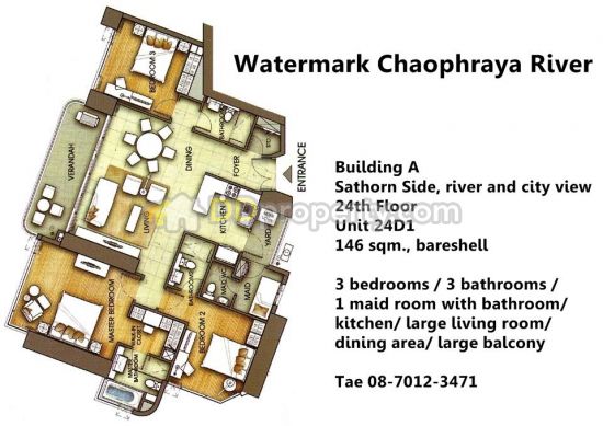 146 ตรม 3 นอน / 3 น้ำ / 1 ห้องแม่บ้านพร้อมห้องน้ำในตัว / 1 ครัว / 1 ห้องนั่งเล่น / 1 โซนกินข้าว / ระเบียงใหญ่ ราคา 15 ล้าน ถนนเจริญนคร ห่างจากสะพานตากสินและ BTS ตากสิน 5 นาที