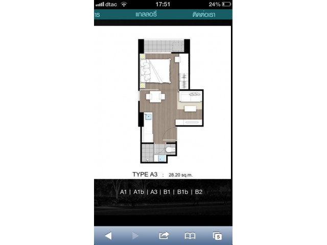 ห้อง type A3 ขนาด 28.2 ตรม. (1 Bedroom)