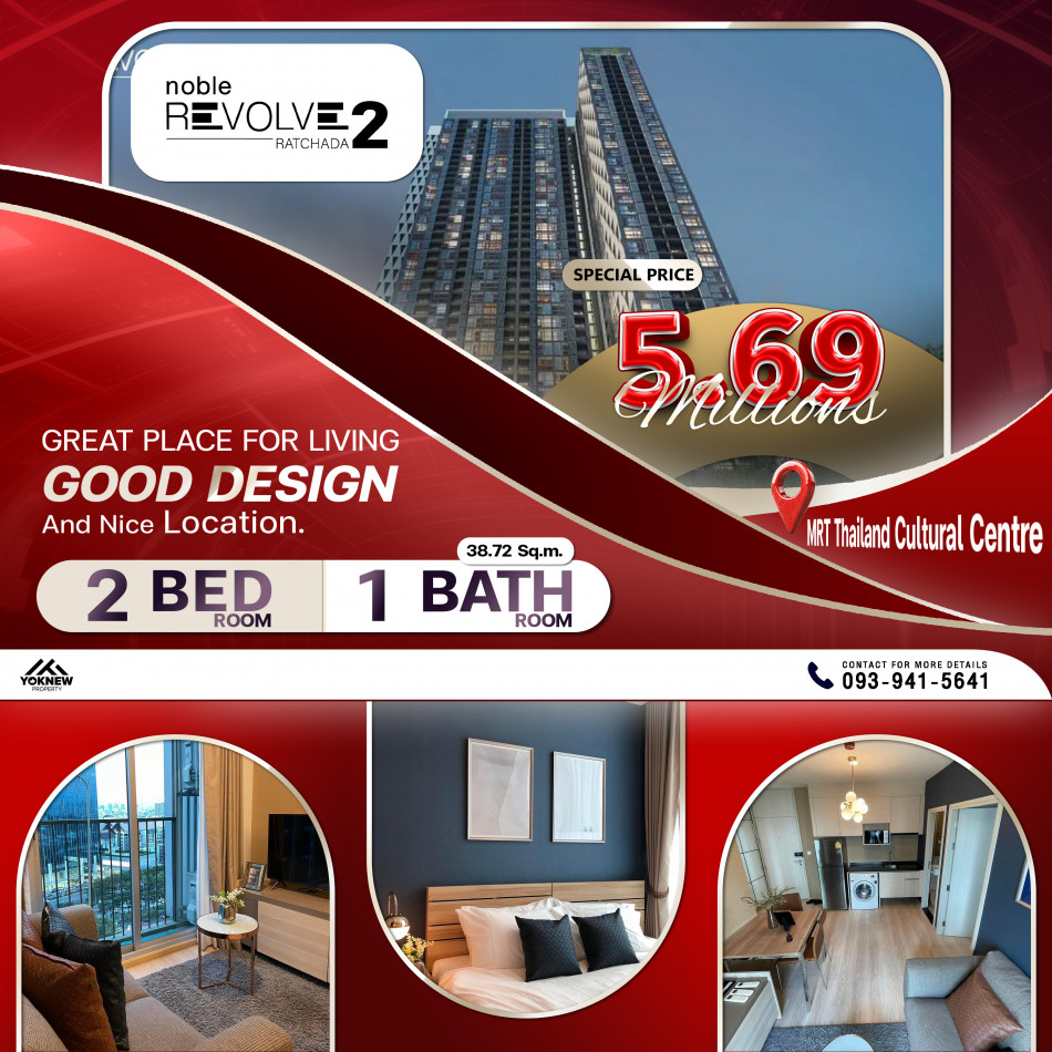 ขาย 1 ห้องนอน 1 ห้องน้ำ คอนโด Noble Revolve Ratchada2 ใกล้ MRT ศูนย์วัฒนธรรม
