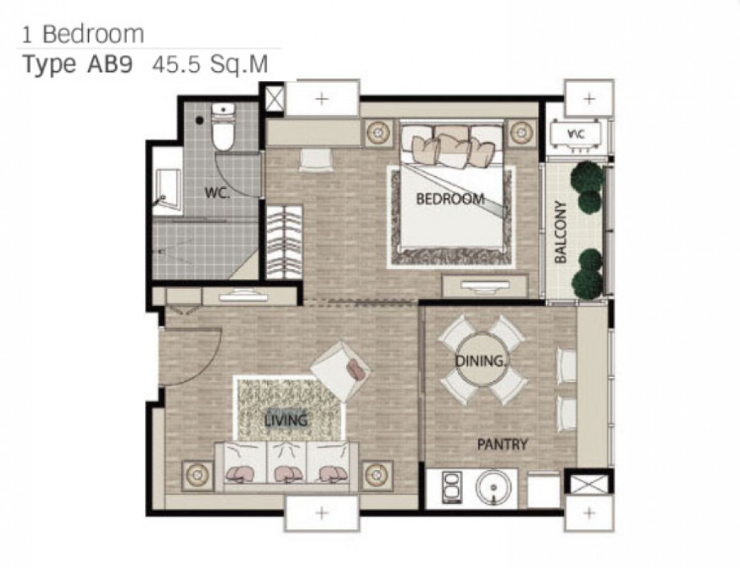 - ชนิด 1 ห้องนอน 1 ห้องน้ำ