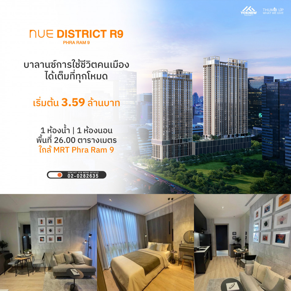 ขายคอนโดโครงการ นิว ดิสทริค อาร์ 9 - 3599000 บาท ติดต่อคุณ Yoknew Property
