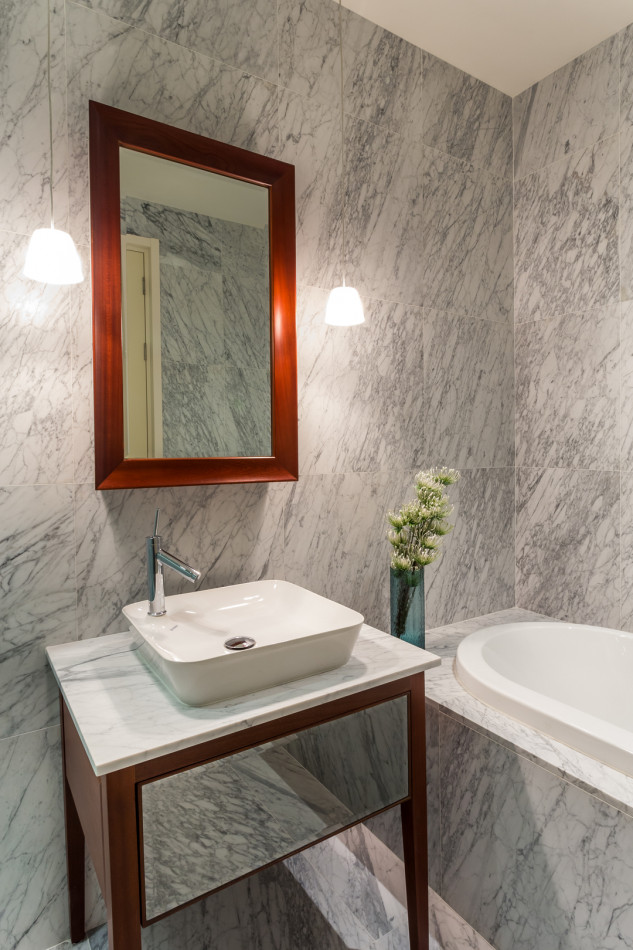 ว่างเช่าห้องหรูตกแต่งมาอย่างสวยงาม ห้องน้ำลายหินอ่อน Khun by yoo Sansiri