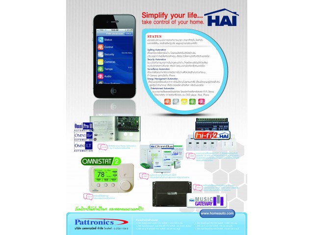 รับออกแบบระบบ Home Automation ใช้งานผ่านโทรศัพท์ มีโปรแกรมตั้งคำสั่งล่วงหน้า สูงสุด 1,500 คำสั่ง เชื่อมต่อระบบกล้องวงจรปิด สัญญาณกันขโมย เปิดปิดไฟอัตโนมัติ ใช้งานง่ายแค่ปลายนิ้วสัมผัส
