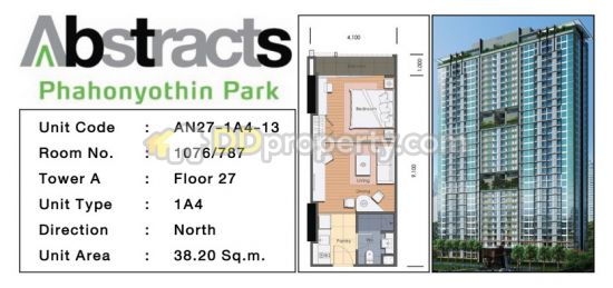 P16CR1911006 Abstracts Phahonyothin Park 1 Bed 1 Bath 38 Sqm