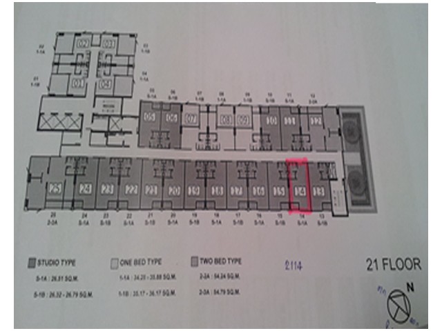 ขายดาวน์ห้องสตูดิโอ ชั้น 21 ห้อง 2114 เนื้อที่ 26.51 ตรม.