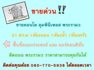 คอนโด 1.6 x 31 ตร.ม 1ห้องนอน 1ห้องน้ำ 1ห้องครัว และพื้นที่อเนกประสงค์ มีแอร์คอนดิชั่นในตัว ราคาสามารถต่อรองได้ในราคาที่เหมาะสม สามารถเข้าชมเพื่อดูสภาพห้องได้ อยู่ที่ติดถนนพระราม 3 ย่านกลางกรุงไปไหนมาไหนสะดวกสบาย ติดต่อคุณ ต๋อย 080-770-5938 ได้ทุกเวลา