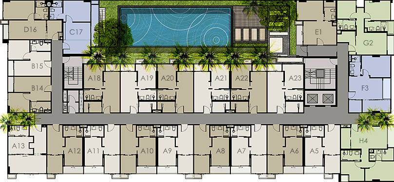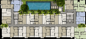 ขายดาวน์ คอนโด Klass Silom 32 ตร.ม. วิวสระน้ำ ชั้น 8 (บนสุด)