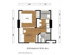 ห้องเลขที่ A-3116 ชั้น 31 ขนาดห้อง 26 ตร.ม. (1 ห้องนอน 1 ห้องน้ำ)