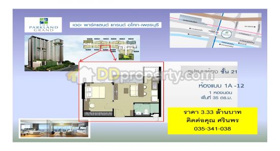 Parkland Grand Condominium for Sale, 1 Bedroom and the area is 35sq.m, Selling Price: 3,090,000 Million Baht - คอนโด ขาย