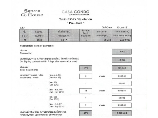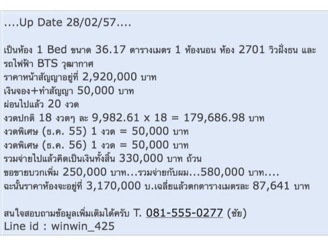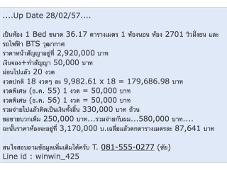 ขายคอนโดโครงการ คาซ่า คอนโด รัชดา-ราชพฤกษ์ - 2190000 บาท ติดต่อคุณ Chatchanok Ratrinart