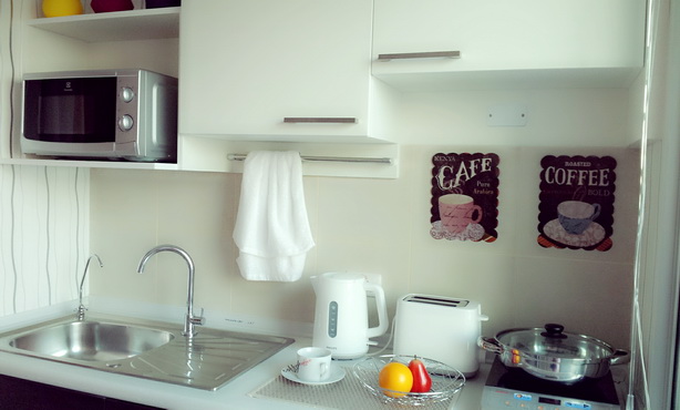 - ห้องครัว มีชุดครัวให้ ตู้เก็บของ