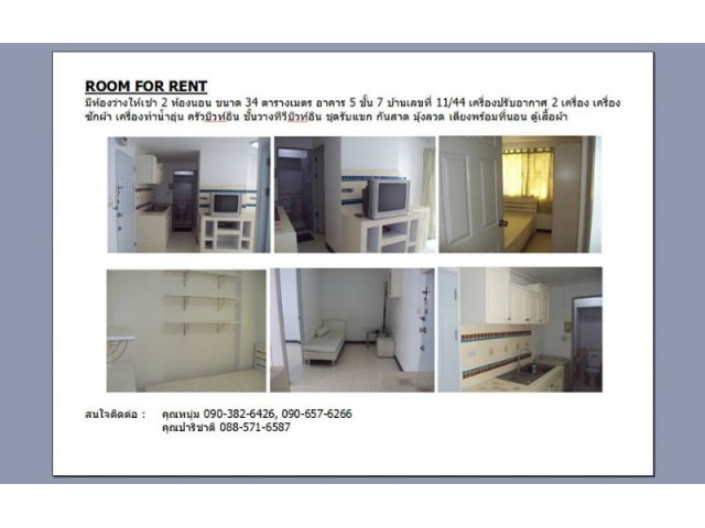 มีห้องว่างให้เช่า 2 ห้องนอน ขนาด 34 ตารางวา