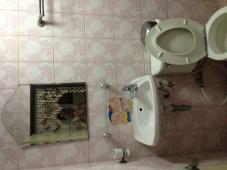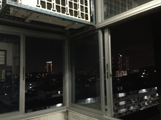 ห้องมุมค่ะ กั้นห้องครัวด้วยกระจกบานเลื่อน มีเคาน์เตอร์ล้างจาน ปูพื้นกระเบื้องใหม่สีชมพูอ่อน